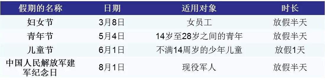根据《全国年节及纪念日放假办法》,部分公民放假的节日及纪念日假期的适用对象、时长如下,放假期间视同正常出勤给付工资。